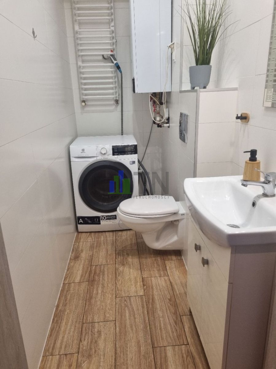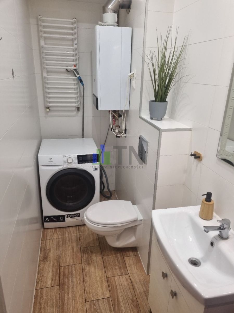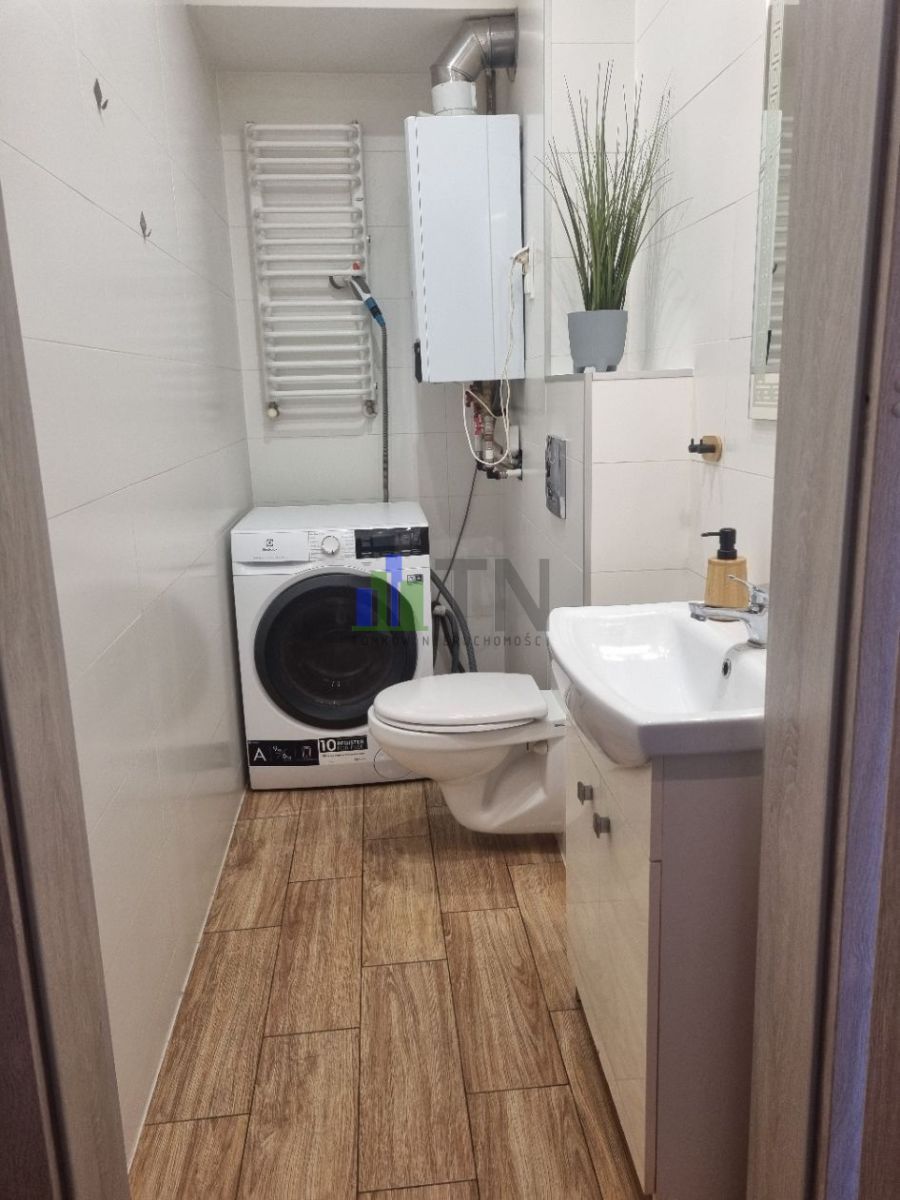 Na podłogach panele i kafle, w kuchni meble w zabudowie wraz ze sprzętem AGD.