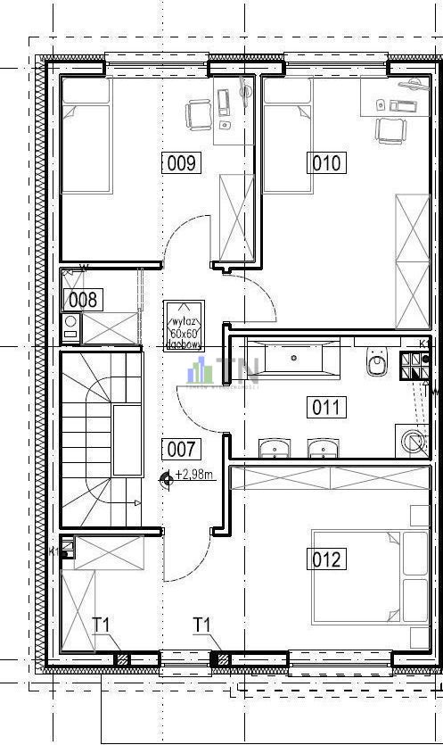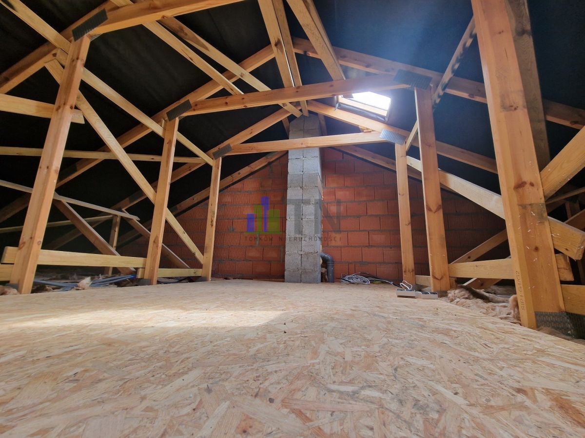 - Konstrukcja dachu Drewniana ( wiązary), wydzielony strych