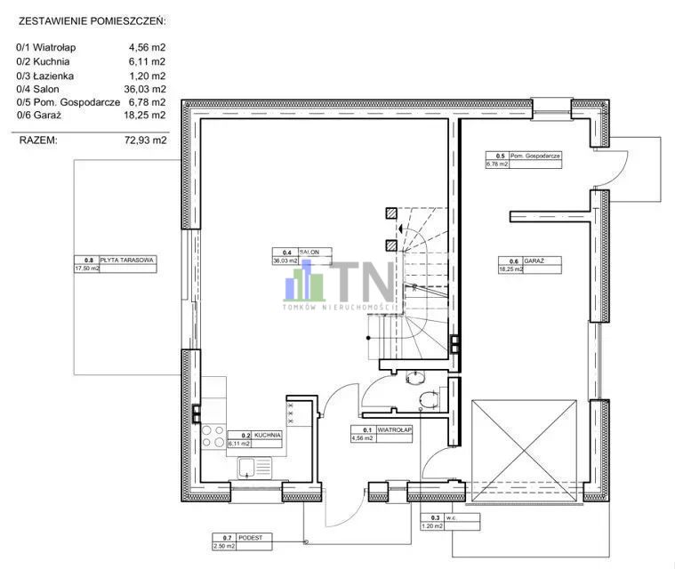 - garaż 18,25 mkw